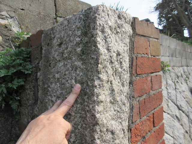 上流側に向けてやや転ぶ形状でレンガ積みに沿わせるように花崗岩柱が立っていた。