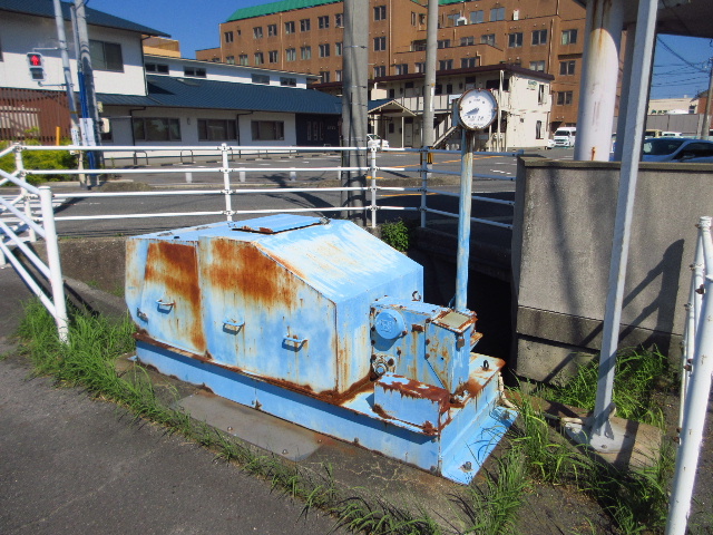 機器にはゲートの開度計が付属しているので、道路の反対側にある東芝中水路への分水を行っているのかも知れない。全体に錆び付いた感があり現在も使われているかは明らかでない。