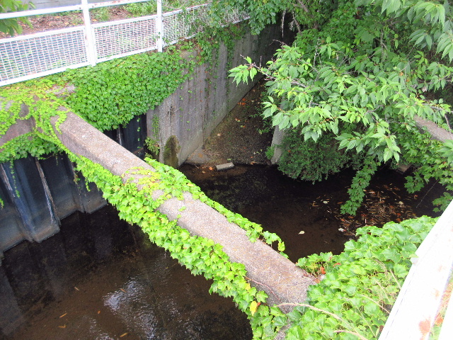 写真は恩田町五丁目にあるUBE独身寮裏手を流れる中川。