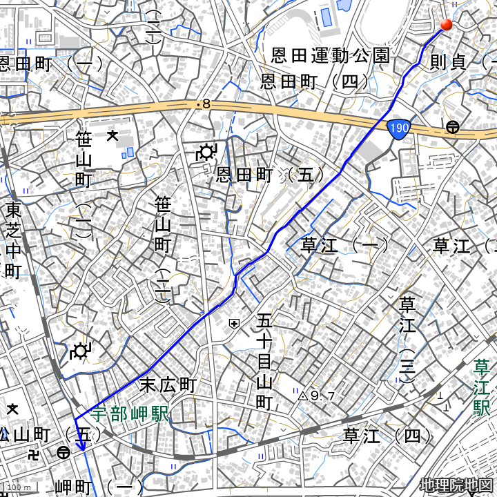 まだ現地踏査も撮影も行っていない。写真を確保次第追記する。【 国道190号〜市道笹山岬台線 】