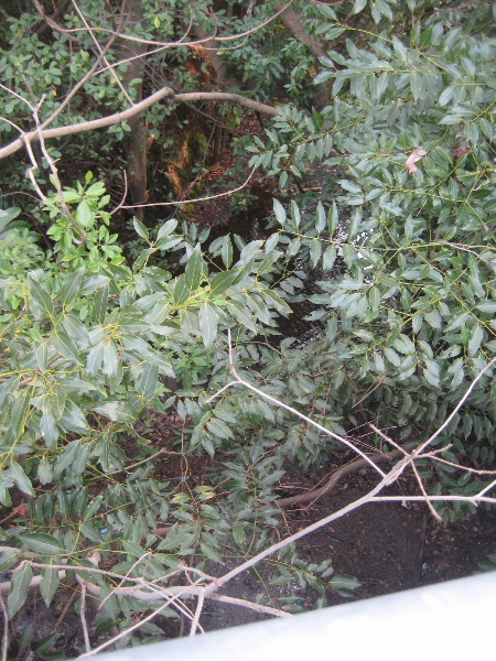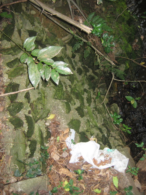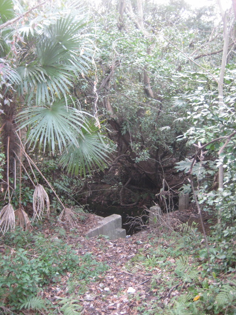 鬱蒼と木々が茂っていて見えづらいが、滞水していた。