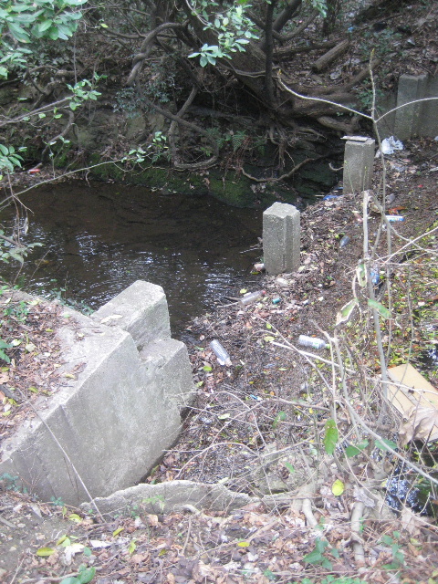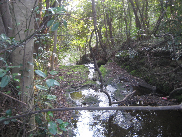 元の塚穴川が流れていた沢がどれ位深いのか確かめるために、古い歩道に入って交差点側に歩いてみた。