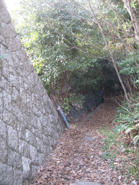 石垣が切れた先から溝蓋の上を歩く道になった。落ち葉の堆積が物凄く滅多に人が往来しない場所らしい。