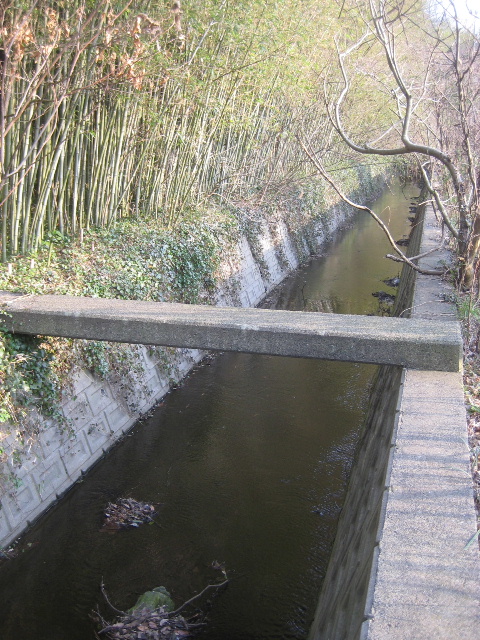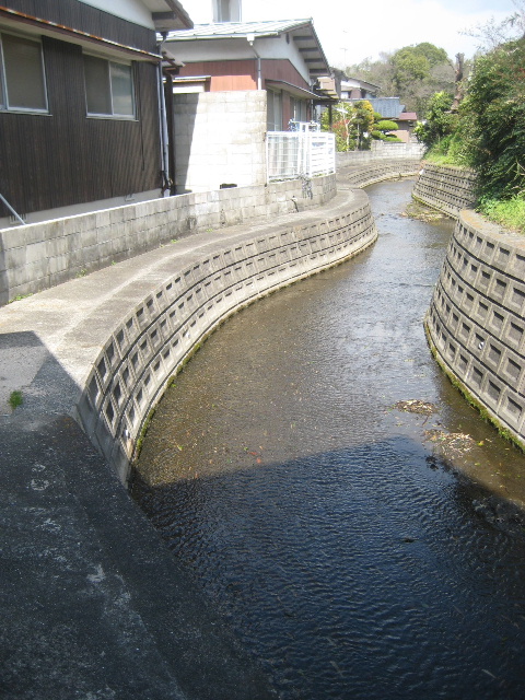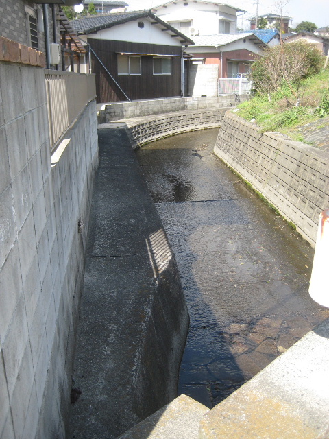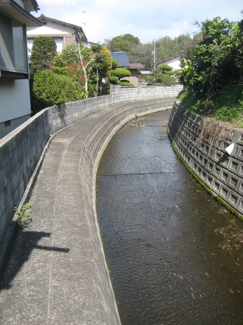 周囲は家屋から塀から護岸まですべてコンクリート一色…自然な川の様相は微塵もなく、橋というよりはコンクリート床版、川と言うよりは排水路といった感じだ。