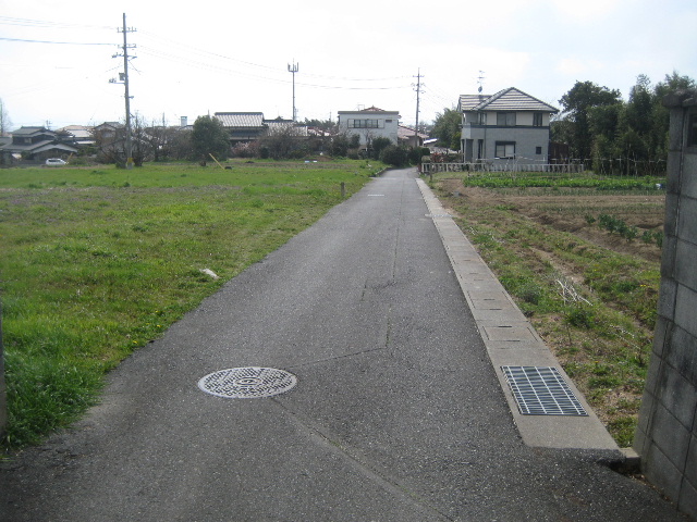 道は畑地を緩やかに下りつつ真っ直ぐ進んでいた。