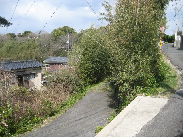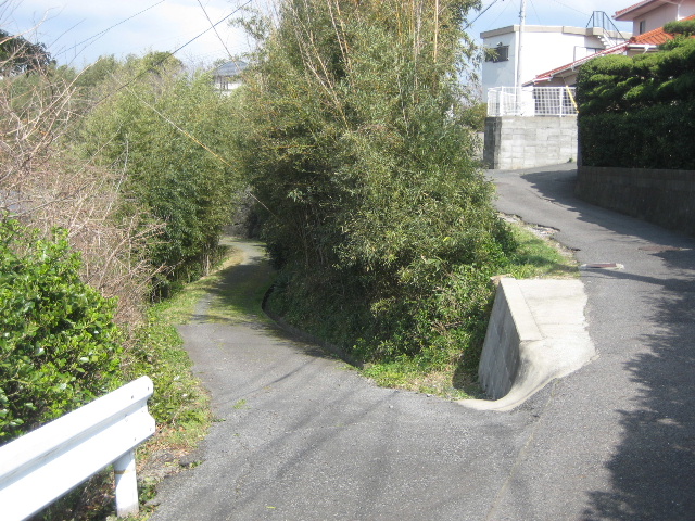 かなり古そうな感じの道で、方向からすれば塚穴川の上流に向かって降りるように思われた。しかし民家の庭先に入り込んで行き止まりというパターンが頭を過ぎったので見送った。ここから既に坂の下で塚穴川を横断する部分が見えていたからだ。