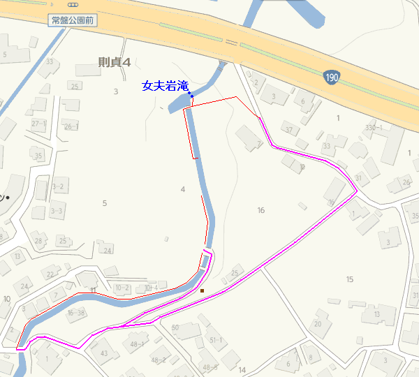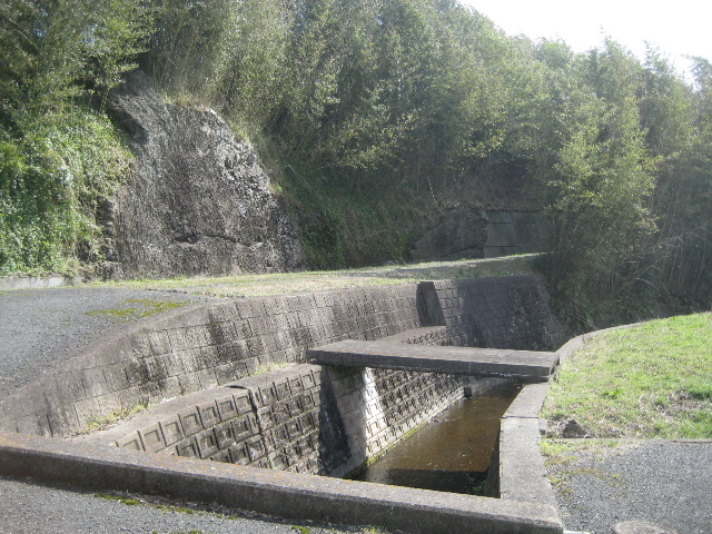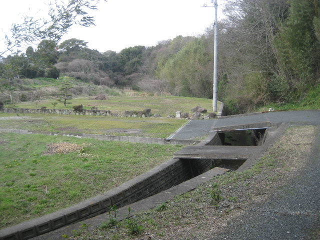 これで女夫岩滝のあった池から最初に自転車を留守番させたコンクリート床版のところまで「目視で辿った」ことになる。骨折った割にはこれといった特徴もない普通の排水路同然だった。あまりにも簡単に片付いてしまったので、再び結果論だが今度はわざわざ自転車を取りに引き返した意味がなかった。引き返さず一旦広場の先まで歩いていれば、あの分断地点から先方を確認した上で進行不能と気づけていたからだ。