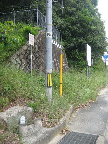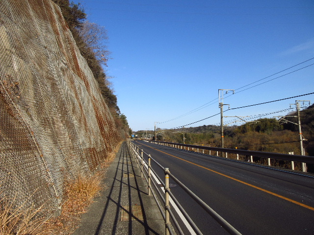 昭和30年代の改変が今のところ崖部分を削った最後の履歴である。落石防止の金網が張られ、全体にコンクリート吹き付けが施されている。