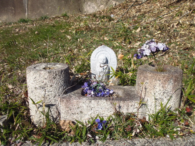 現在は厚東川工業用水道の旧サイフォン呑口がある厚東水橋のすぐ横に、小さな石仏が祀られている。