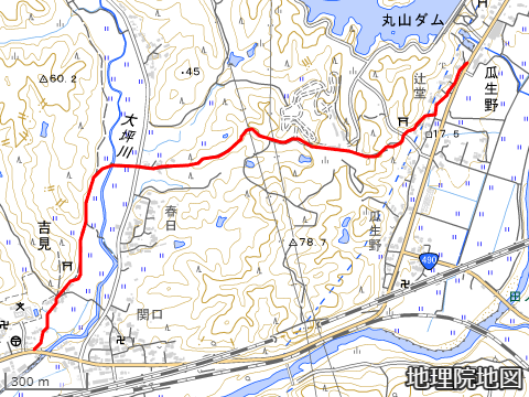 この経路の中ほどにかつて巨岩があった。「ユルギ堂」と呼ばれるこの大岩は、かつて瓜生野村と吉見村の境になっていた。この大岩は、初めて安全に通行できる道が整備された明治期に取り除かれた。[1]