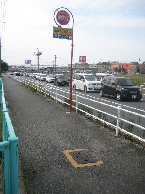本路線部分の車が動かないので、各店舗から市道へ出ようとする車までも数珠繋ぎになってしまっている。