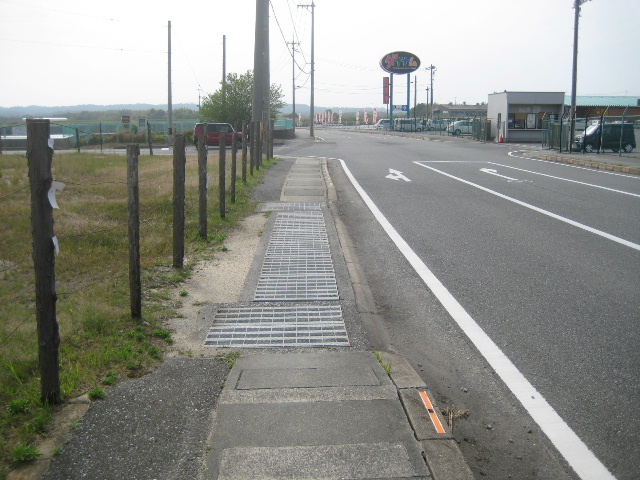 道路の規格は起点からのと変わらないが、歩道の仕様が違っている。側溝に蓋を掛けてその上を歩道としている。