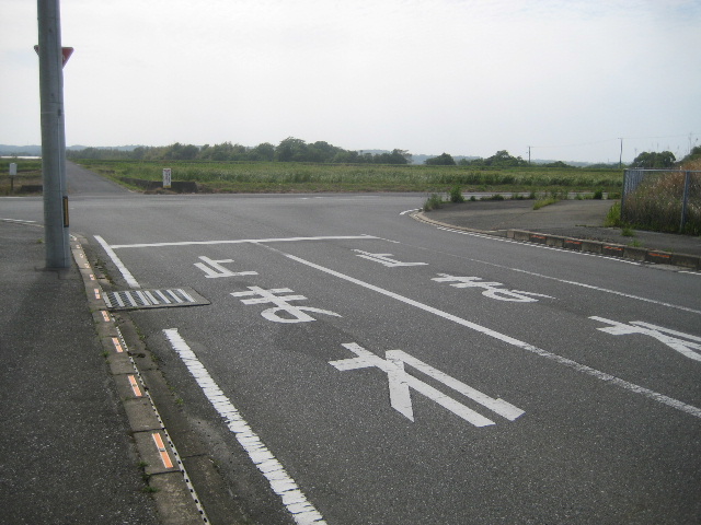 最初の十字路。横切る道はすべて地元管理道だから本路線に優先権がある。