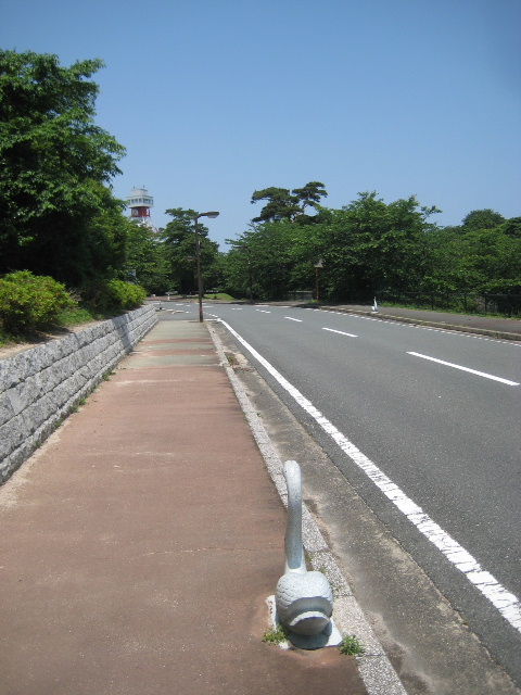 市東部の一部の小学校ではお別れ遠足の行き先として常盤公園が定番だった。私たちは国道を横断してこの歩道を通った。そのときの記憶をたぐれば、松の木は市道へ垂れ掛かるトンネル状態で植わっていたのだが、現在は歯抜け部分が多く昔に比べれば明らかに減っている。