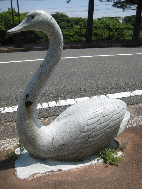 歩道端にはハクチョウのオブジェが設置されている。
