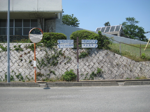 T字路の正面には行き先案内板が設置されている。