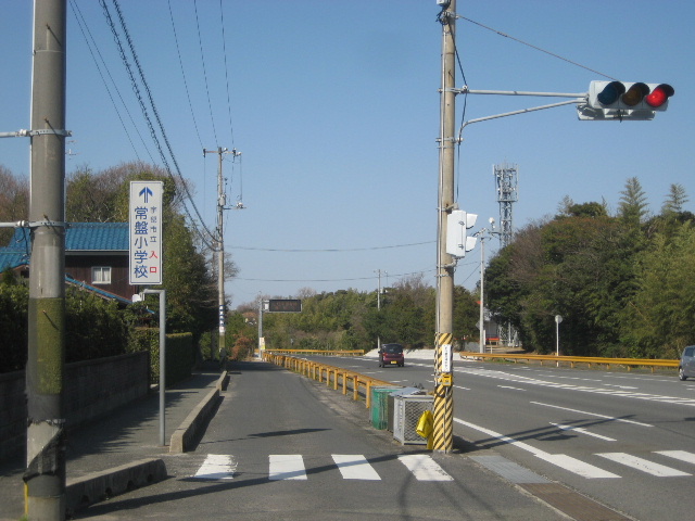 しかし逆に常盤小学校の正門を出て山口宇部道路ないしは市道に曲がる場合、どの信号に従えば良いものか迷ってしまう。小学校の出入口が山口宇部道路と市道の付け根部分に接続されているからだ。