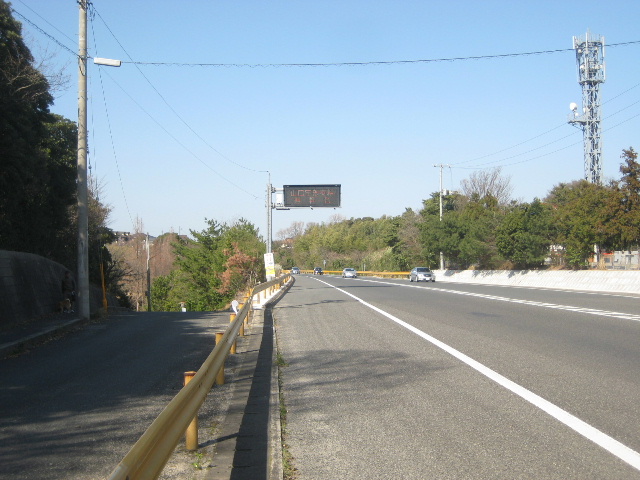常盤小学校正門に向かう道は、山口宇部道路とガードレール一枚隔ててくっついている。舗装の高さはまったく同じだ。