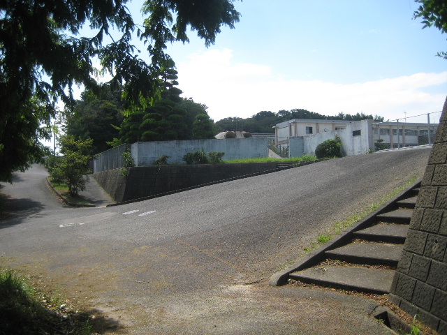 この場所は正門前から山口宇部道路に沿って下っており、門の前だけ急な坂になっている。