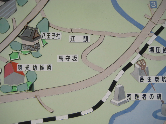 1. 西岐波ふれあいセンター敷地内のイラストマップに馬守坂として記載されている。常盤ふるさとまっぷ