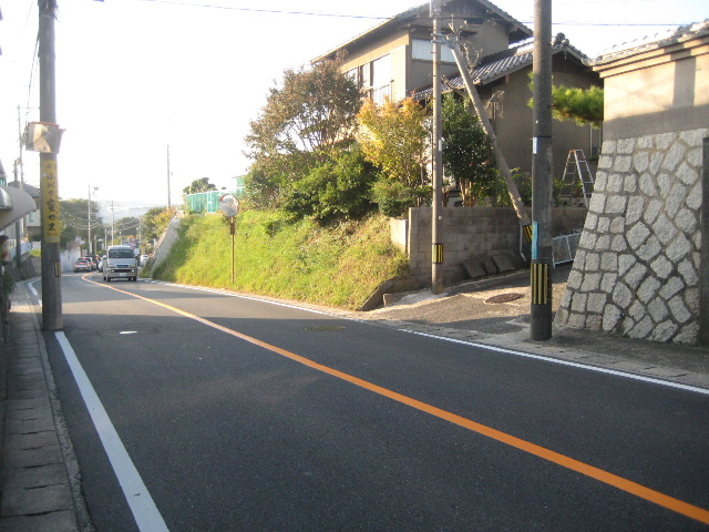 この付近だけは何故か道路周辺が広く、自歩道も充分な幅が確保されている。