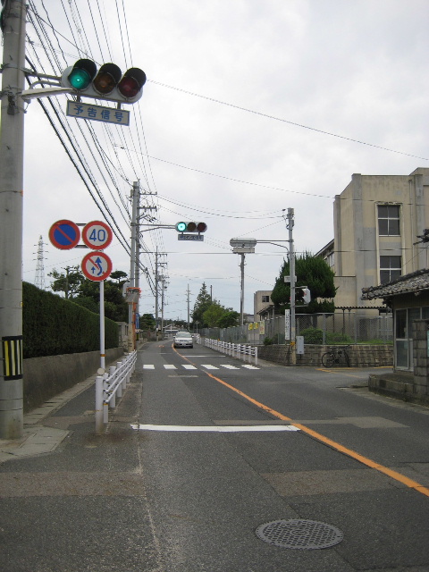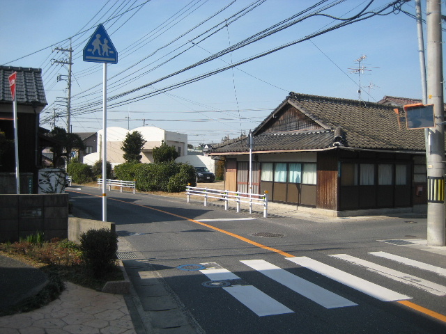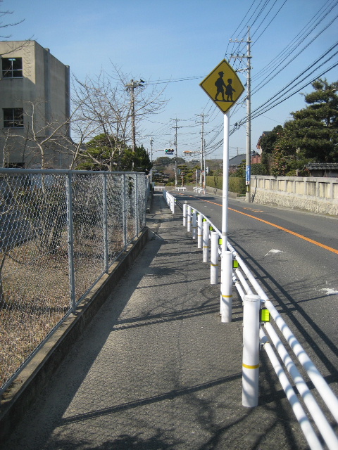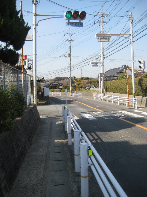 この前後は市道が緩やかにカーブしていて見通しが良くないため、押しボタン式信号の予告信号が設置されている。[2009/10/7]