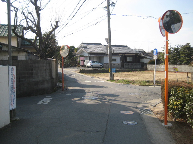 さて、この地蔵尊を過ぎたすぐ先でちょっと歪んだ十字路に出会う。形態としては十字路なのだが、昔からの道にはありがちなようにどの2本をとっても直線的に会合していない。交通量は少ないにしても見通しが悪くドライバーが気を遣いそうなポイントだ。