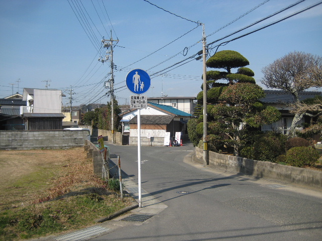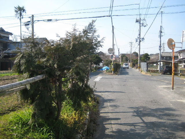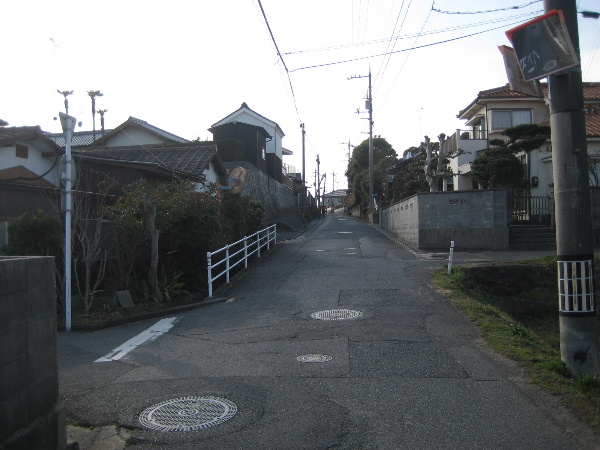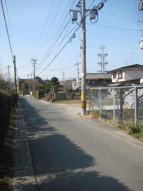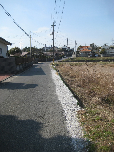 お不動様を過ぎると、大小路交差点を過ぎてからは初めてと言える位に片側の民家が退き野原のような荒れ地が広がる。市道も先の方まで見通せる。軽い上りになっているようだ。