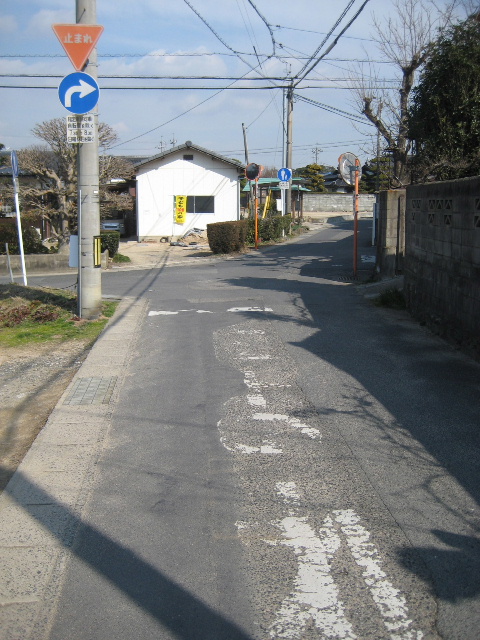 ブロック塀の連なる区間で市道は軽く左へカーブしている。このことで結局は軌道修正され小串方面に向かっているわけだ。