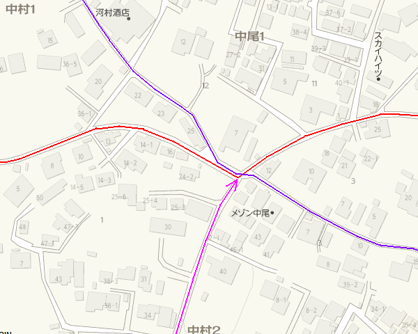 市道の経路を正確にトレースするという観点から言えば、この変形十字路は最初の「難関」である。
