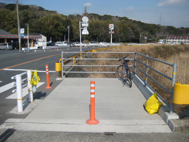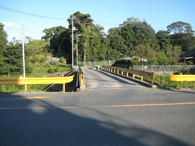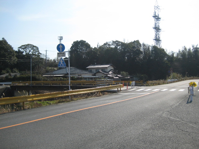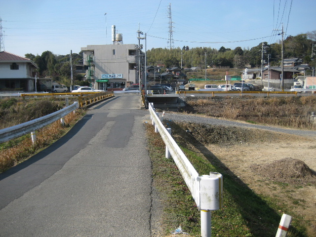 市道はそれでなくても狭い幅員を更に縮小させたコンクリート橋を渡る。この橋は鎌田橋と呼ばれている。