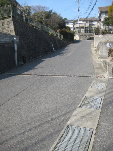 もっとも道路脇に建ち並ぶ家並みからして、急斜面を利用してひな壇を造った新興住宅地ならこの程度の坂道なら割と普通にある。しかし地元管理の道ではなく認定市道だ。それも遠路はるばる宇部空港付近から一路ここまで駆けつけてくれた上得意客市道(?)である。