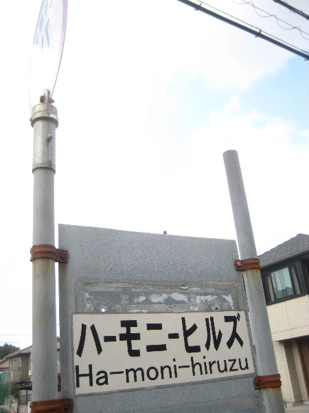 実のところこのバス停名だけの問題ではない。市内既に至る所で蔓延ってしまっている。申し訳ないがその中で特に香ばしさが最高潮に達してしまっている「作品」として取り上げた。市営バスのハーモニーヒルズバス停のサインである。