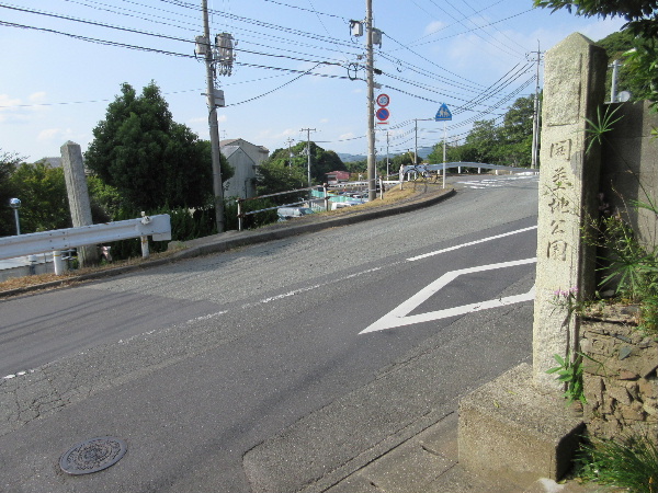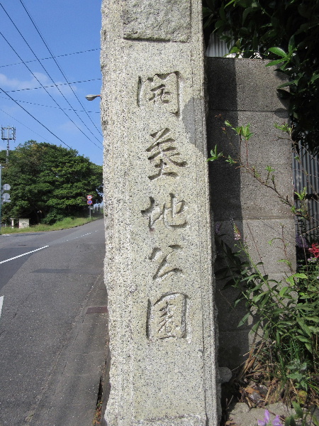 開墓園の手前にある坂の麓に本路線を挟む形で花崗岩の石碑が立っている。入口側に向けて開墓地公園とだけ刻まれていた。