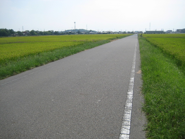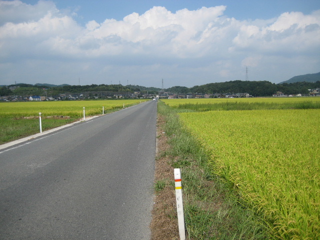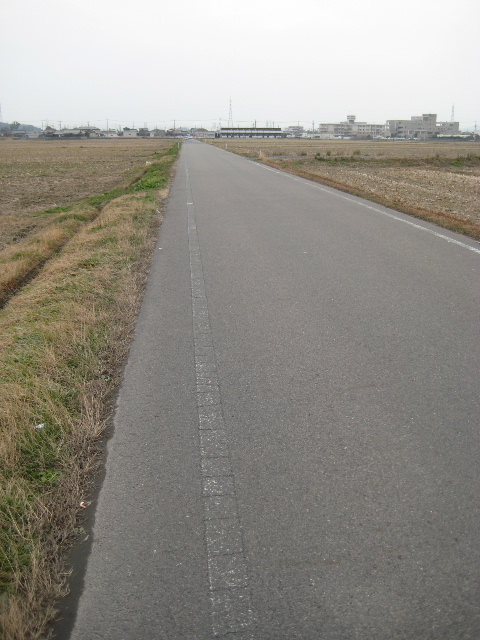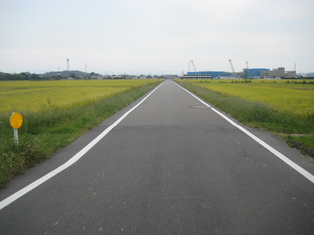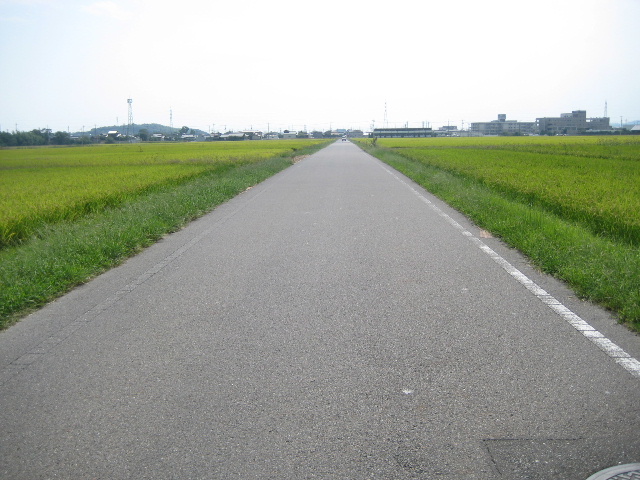 単に直線というだけでなく、起伏ほとんどゼロ。しかも両側にゴチャゴチャとした建物がなく見渡す限り田んぼ。