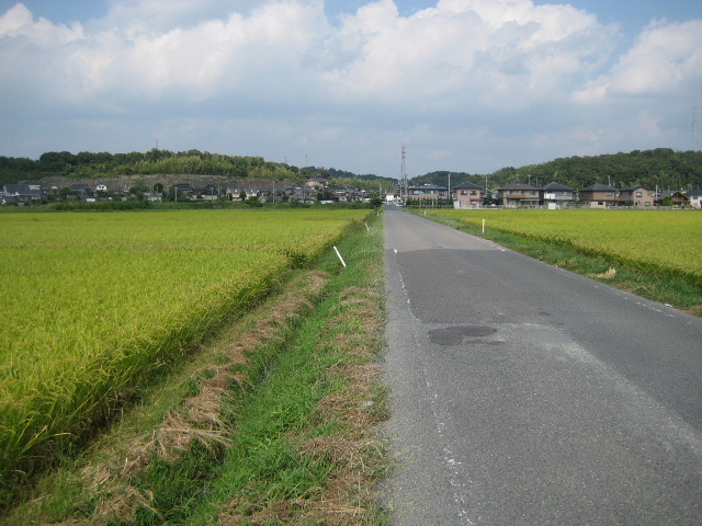 田の末端部へ到達し、このあたりから家並みが広がってきます。