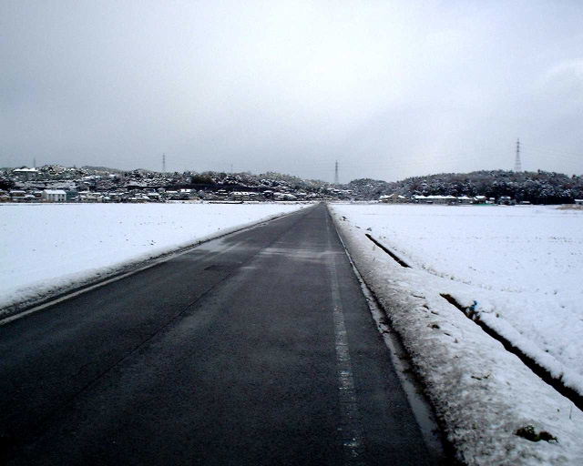 これは今から十年以上も前、仕事である場所を訪れたとき撮影した写真です。珍しく大雪が降り、周囲の田が白一色に埋め尽くされていたせいで直線が印象的でした。
