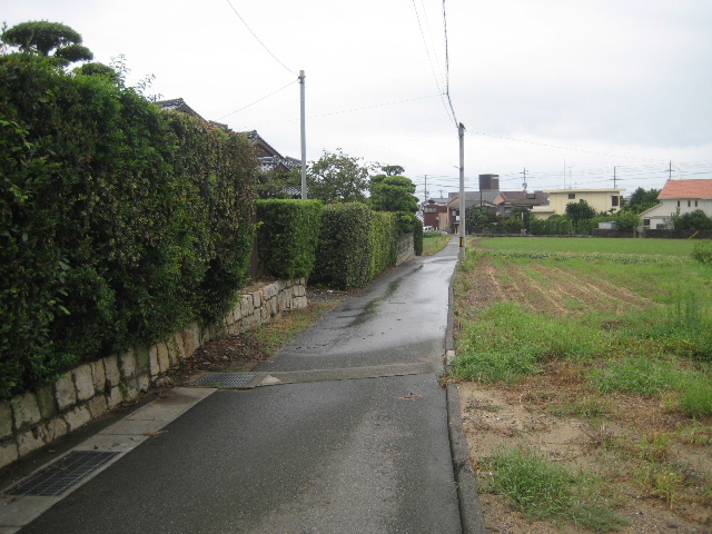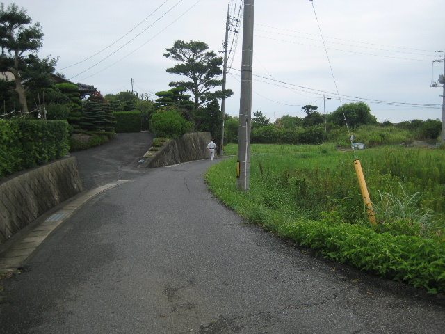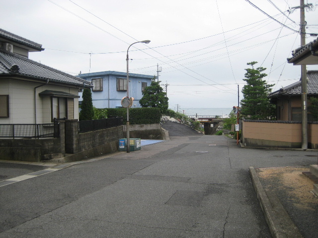 架道橋を過ぎると民家もやや少なくなる。本路線は最後の下り坂で海に向かう。