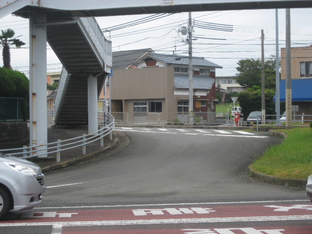 国道から左折して入ってくる車は、通り抜け目的なら何もこんな狭い道を通らなくても手前の亀浦交差点で左折している筈だ。市街地へ向かう車線からの右折進入も通り抜け目的ではまず有り得ない。国道が4車線仕様なので、反対車線の車をやり過ごすのは危険だし時間がかかる。そんな経路を通る位なら、右折矢印信号がついていて安全に曲がれる亀浦交差点を通るものである。