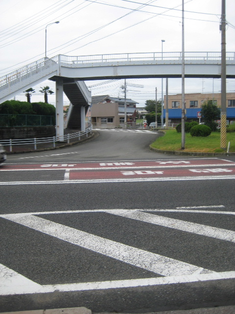 しかし陸橋が見えているということはこの国道合流地点から交差点が近い。国道の信号が青なら車がビュンビュン流れているので安全に出られないし、赤の場合はよほどタイミングが良くなければ既に信号待ちの車列がこの場所にかかっているだろう。一番手前の車線は左折専用なので、床波方面へ行くなら跨ぎ越して次の車線へ移動する必要がある。夕刻の混み合う中スンナリと車列へ入れてくれる寛容なドライバーは少ない。
