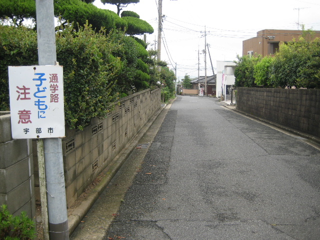道は二又に分岐し、左へ若干上がる方は常盤駅に向かう。駅を過ぎると本路線は宇部線のガードをくぐるため幅が狭くなる。
