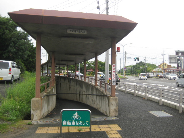 大沢西交差点は交通量の多い国道と県道が斜めに交差しているせいか、国道と県道の西側・南側のみに横断歩道が設置され、この他に地下道と陸橋という複数の横断手段が提供されている。このうちすべての方向からの往来をサポートしているのは地下道のみである。ここではすべての地下道経路をトレースするのではなく、本路線の分断された部分を補う最短経路のみ紹介している。