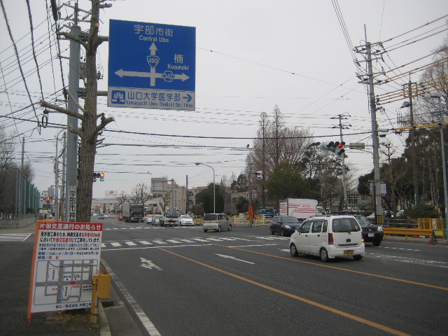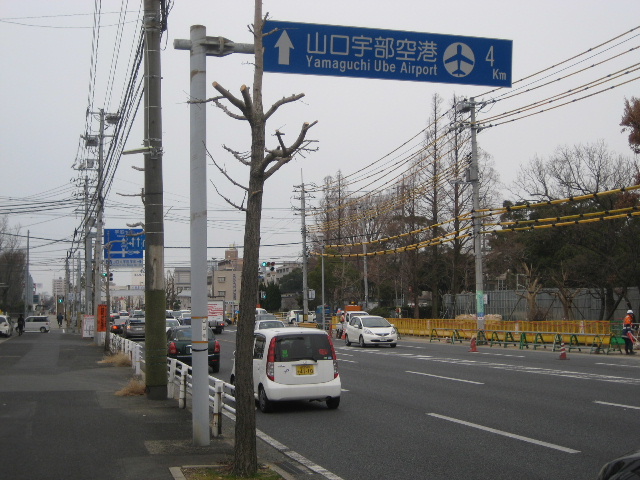 終点はJR宇部線の草江駅を過ぎた先、即ち空港入口である。即ち市街部から空港へ向かう分かりやすい最短路線であり得る。それにも関わらず、この記事を書いている現時点では未だに空港に向かう経路として案内されていない。この路線を使って空港に向かうよう推奨する案内標識が一つもない状態だ。