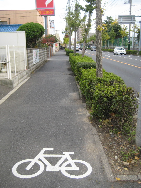 交通量が多く危険なことは市も認識しているからか、歩道に自転車マークがペイントされている。
