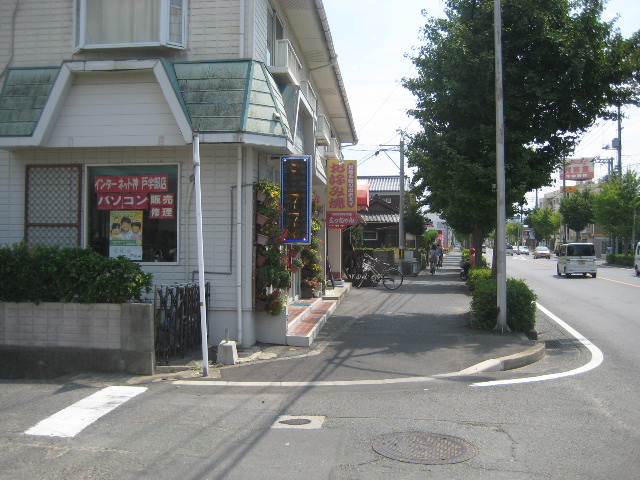 清水崎恩田線との交点、中央高校前の交差点に小さな店がある。この店にはかつてセブンイレブンが入っていた。