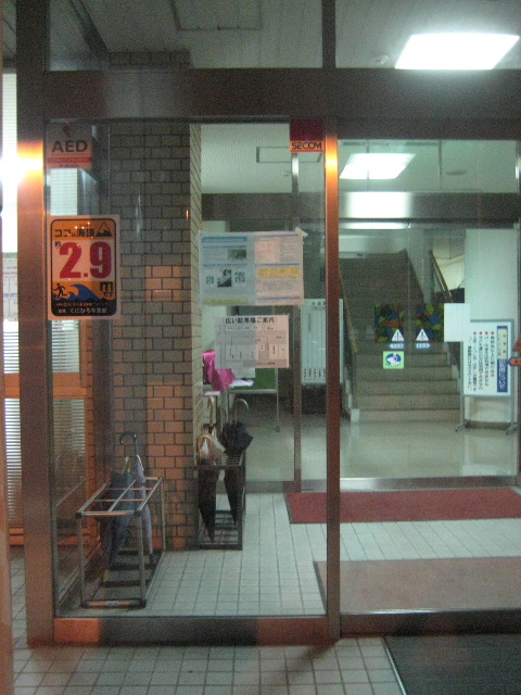 ちなみにこの高度標示ステッカーは最近増殖中で、市役所玄関と裏口に貼られたのを皮切りに、小羽山小学校体育館やふれあいセンターなどでも見つけている。