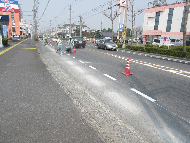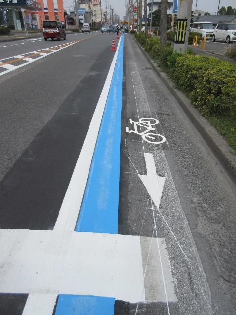 本路線の起点神原交差点から清水川交差点までの上下線に自転車レーンが試験的に設置されることとなった。これに伴い、3月下旬より旧ラインの抹消と新ラインのペイントが施工されている。旧ラインの抹消作業。