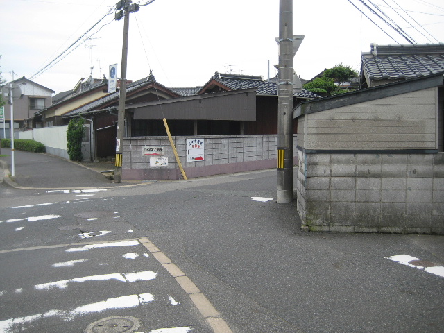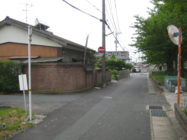 現在はこの道の横に事業所が入っているが、かつてはガソリンスタンドがあった。