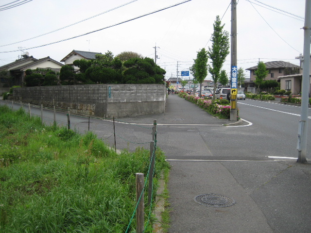 その道は国道を直角に横切った後、西寄りのコースをとって今の経路に吸収されていた。現在交差点から先の広い部分は、元からあった細い道を北側に拡幅して造られている。