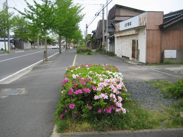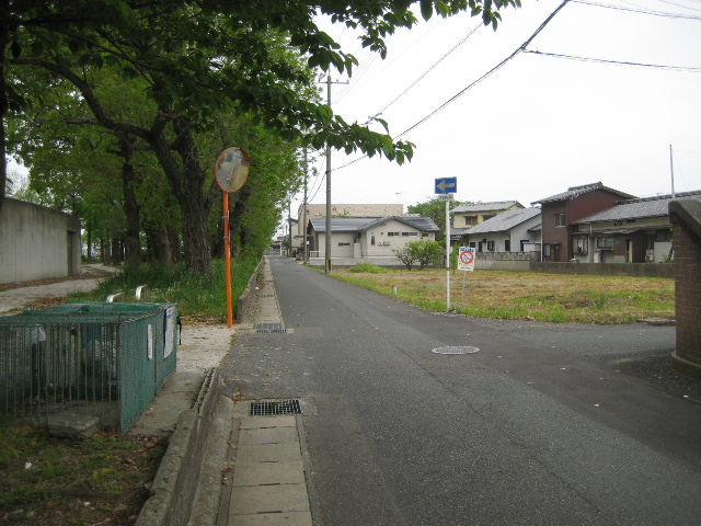 商店の前を過ぎると、植樹帯部分は次第に狭くなり、完全に現在の市道に擦り付けられて消滅する。